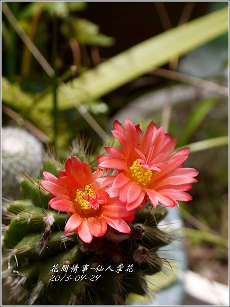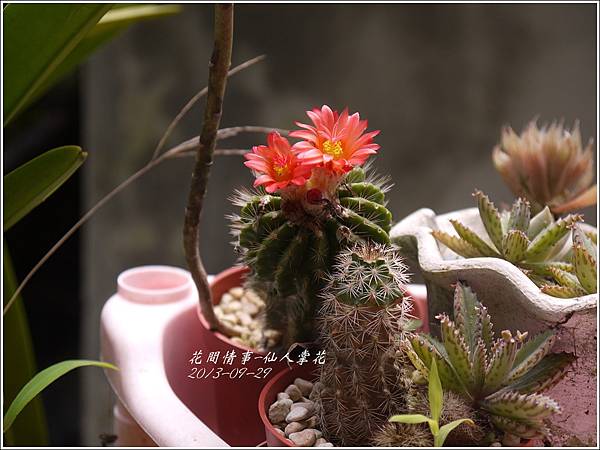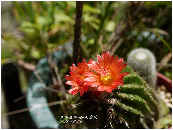 今早(2013-09-29)在後院澆花意外發現開了二朵帶著橘色美艷的仙人掌花