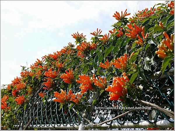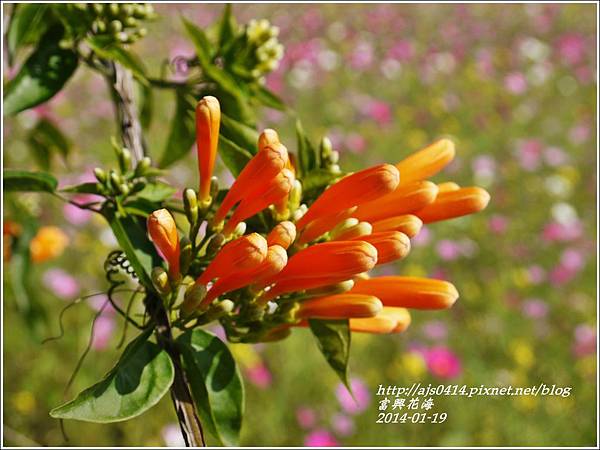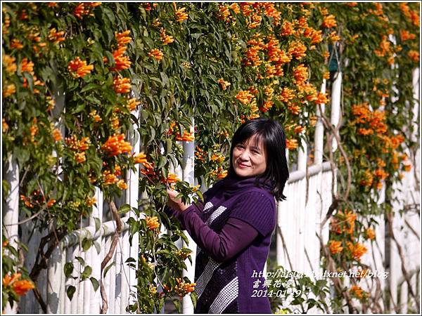 長排花架由炮仗花形成了賞花隧道應景迎新年