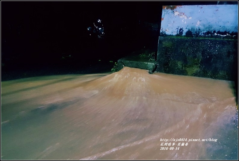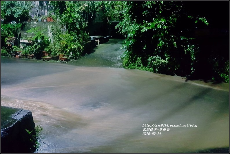 14日的夜間瞬間暴雨也讓66-1號花園門前成了小黃河