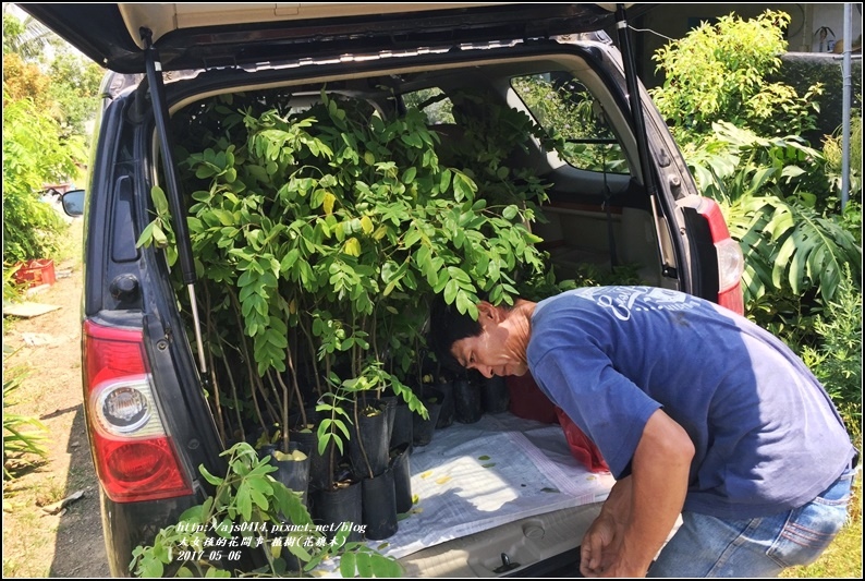 5月初便載回一批花旗木小樹苗及樹紫藤小樹苗回到萬榮