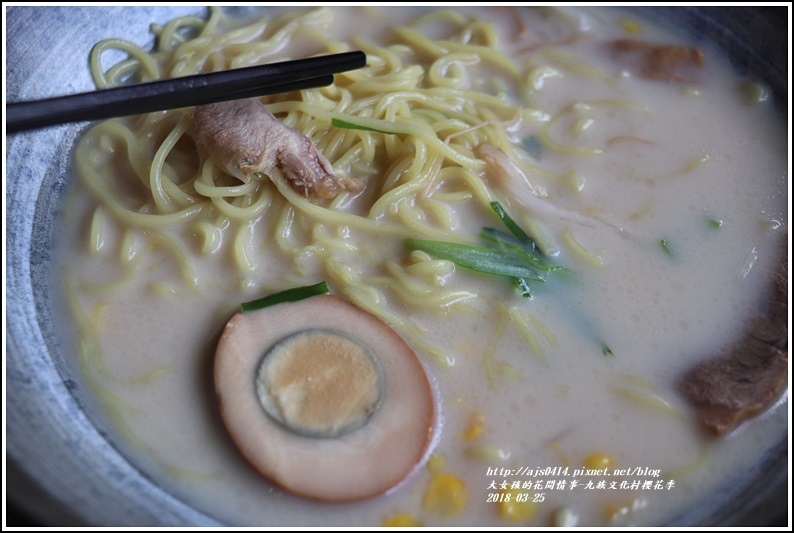 笑回:拉麵在配上外頭的櫻花美景,很可以了啦(哈)