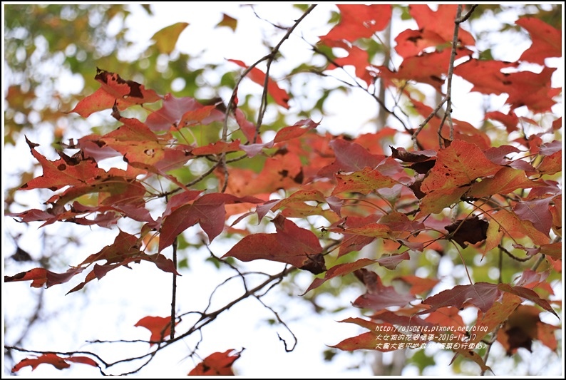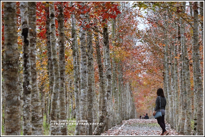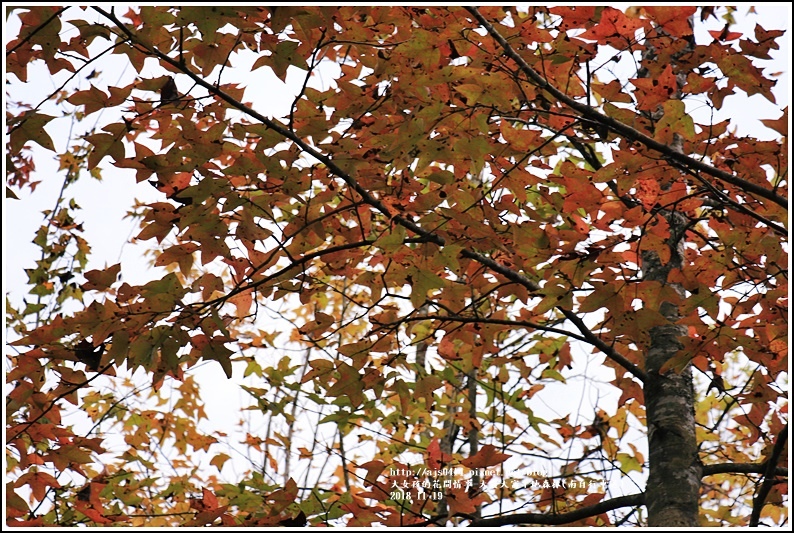 一邊是楓葉林,後側是台灣欒樹,各有各的意境