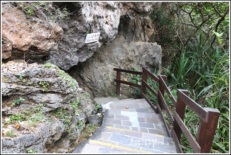 順著步道,穿過許多珊瑚礁奇石而大海就在右側