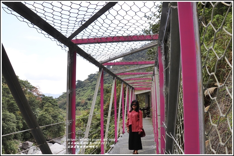 從花架旁的涼亭就可遠眺富源吊橋的橋身