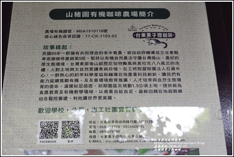 山豬園果子狸咖啡:台東縣卑南鄉明峰村龍過脈112號
