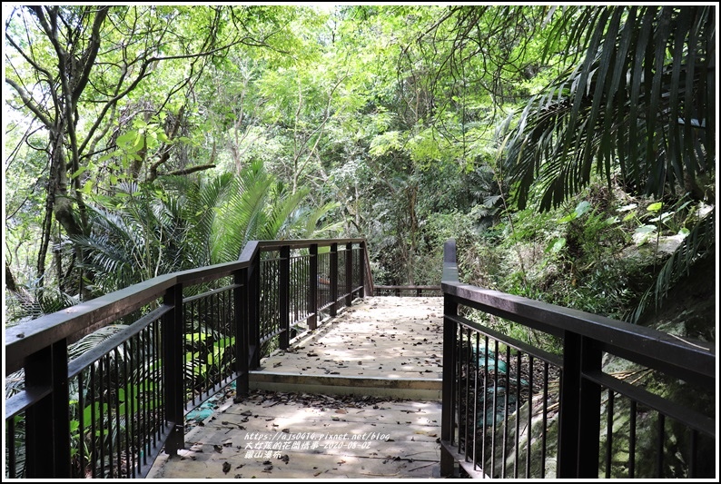 瀑布原有的木棧道受到風災重創,封閉了二年多