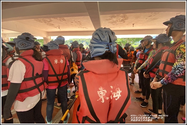 大家聽完講解後,開始按著教練教的方式穿好救生衣、安全帽