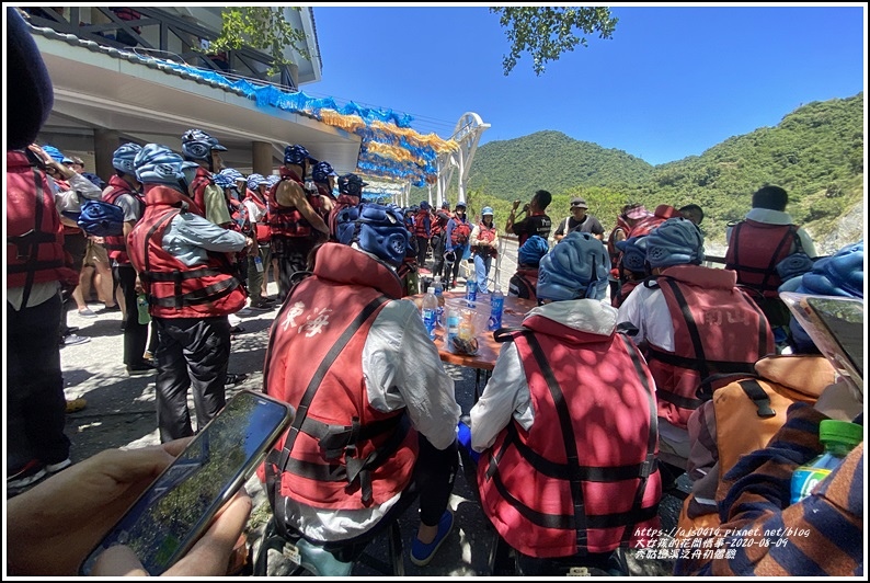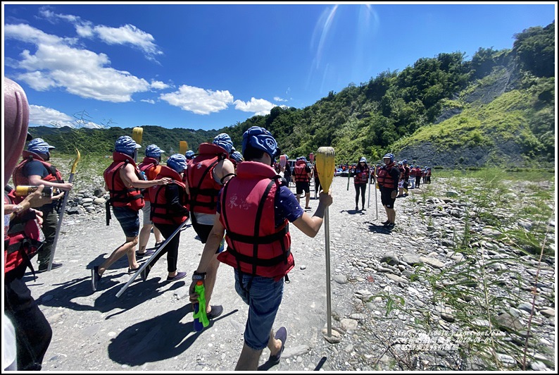 完成報到後,大家在依序排隊領一件救生衣、安全帽