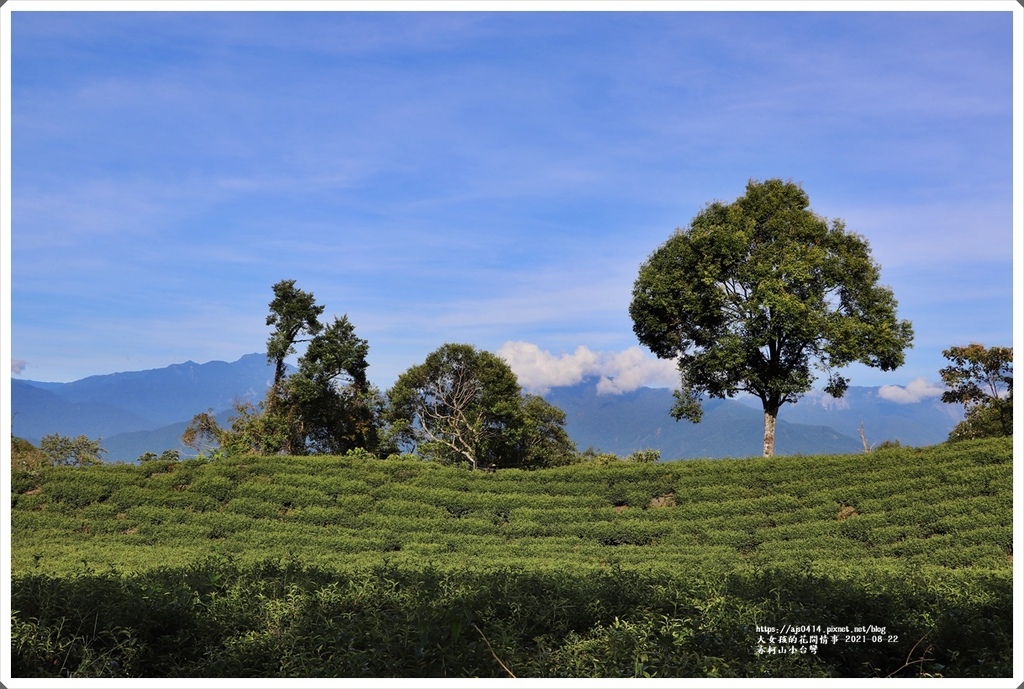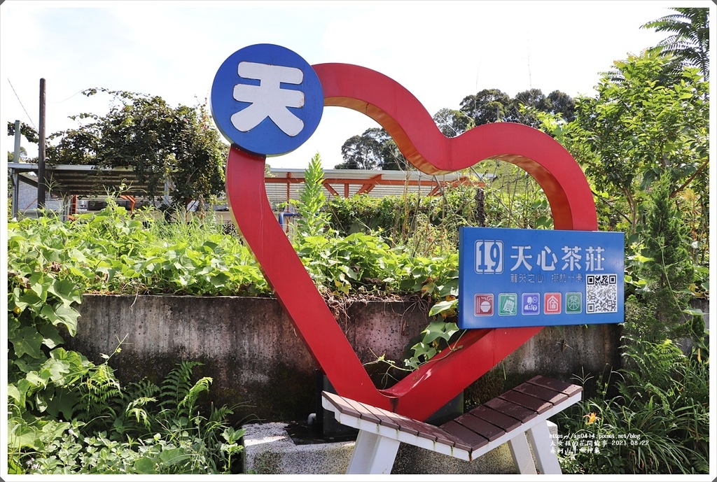 想應是花季時特別設置於此,一旁還能見到美麗的茶園風光
