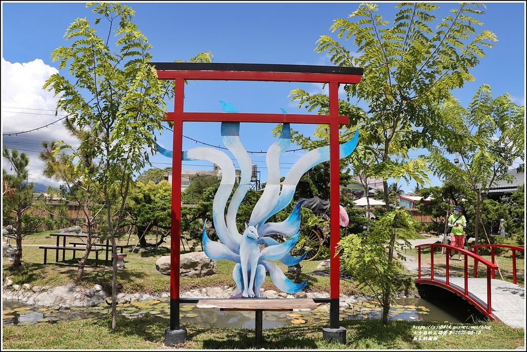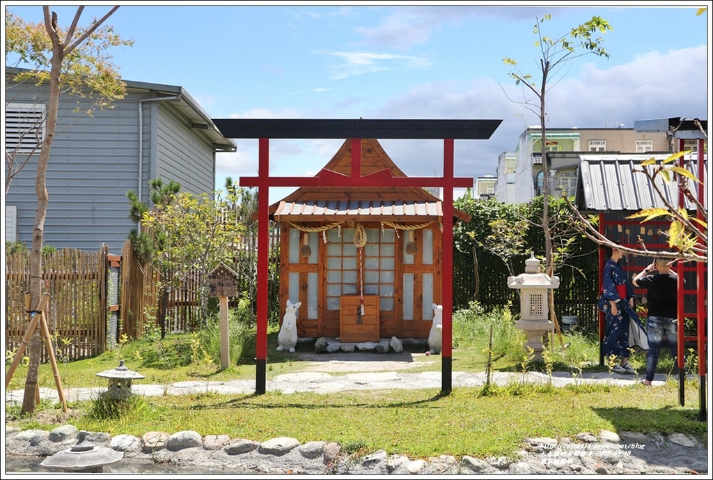 走到後院一眼看到上頭掛著平安二字的鳥居