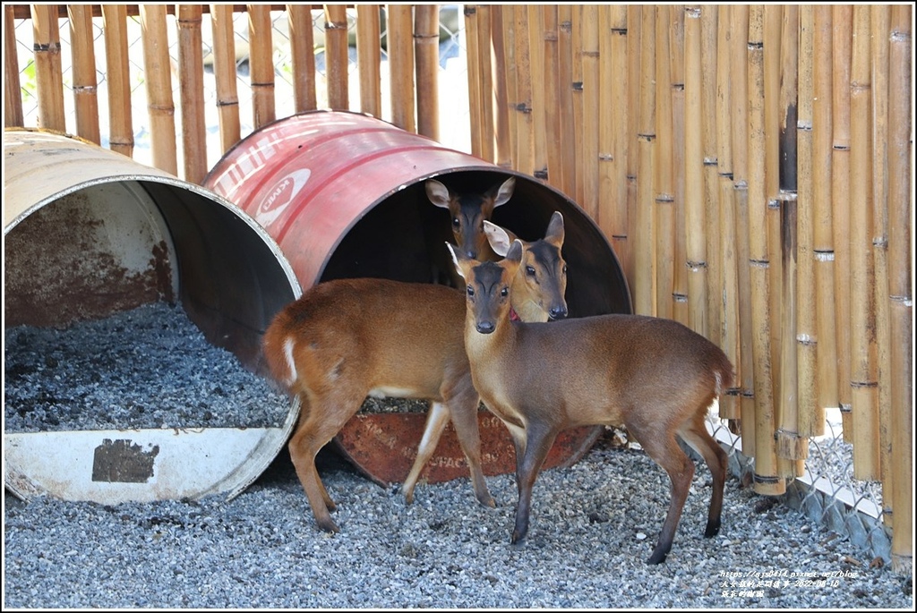 底圖則是山羌用著無辜的眼神看著進到園子裡的人
