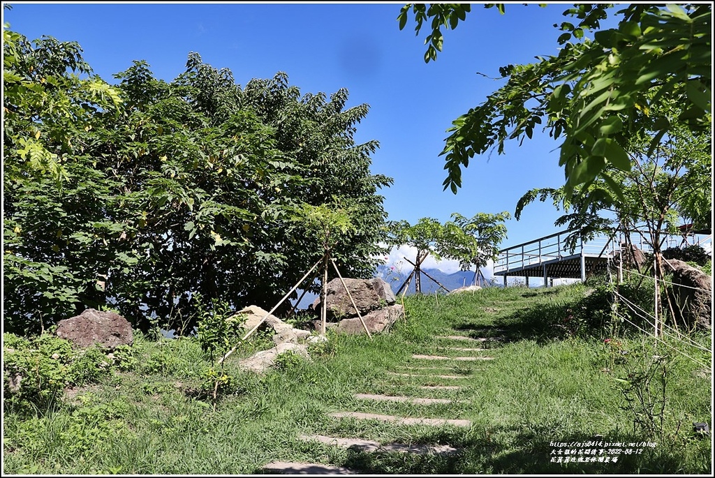 在老板的巧思,巧掉高莖作物,讓園地大石顯露並開築步道植入花草