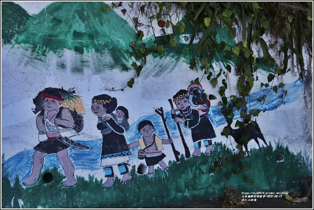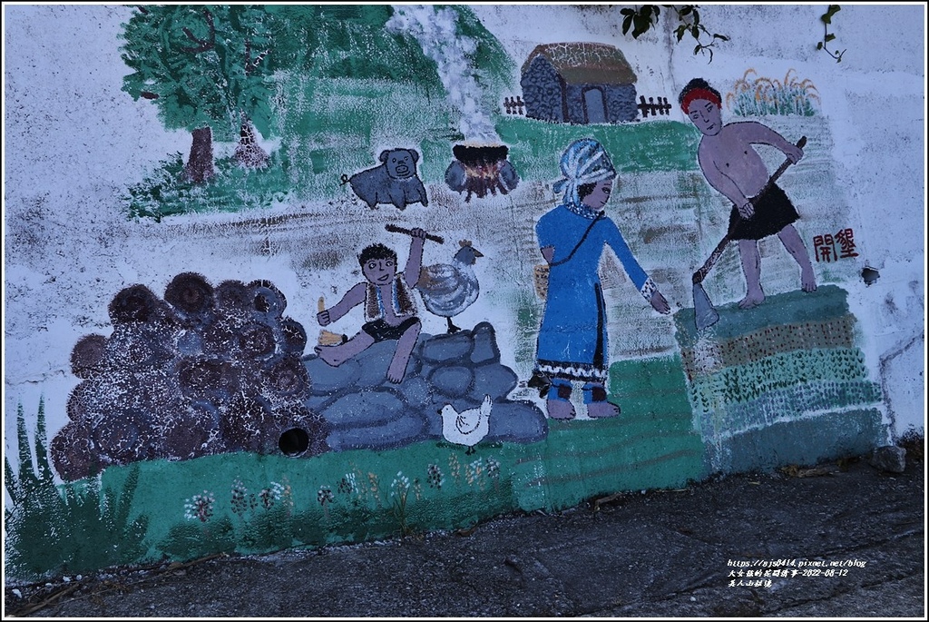 產業道路旁的牆壁上還有彩繪圖