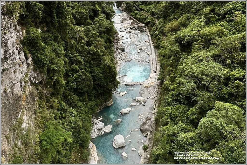 底圖左側下隱約能見到一觀景台,那是舊橋墩新設延伸出去的觀景平台