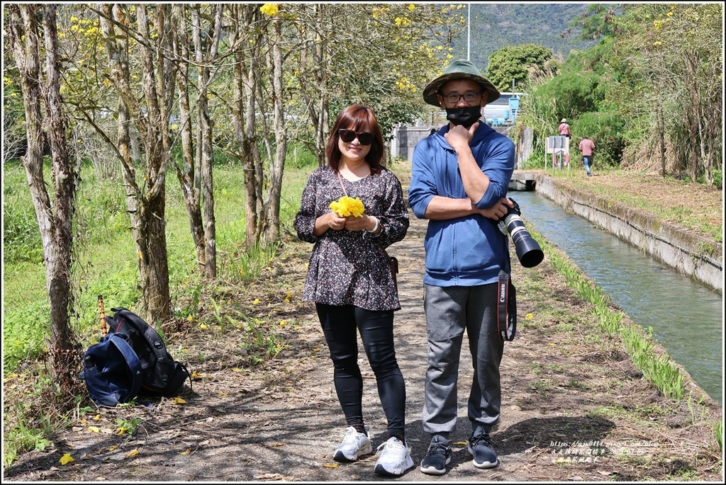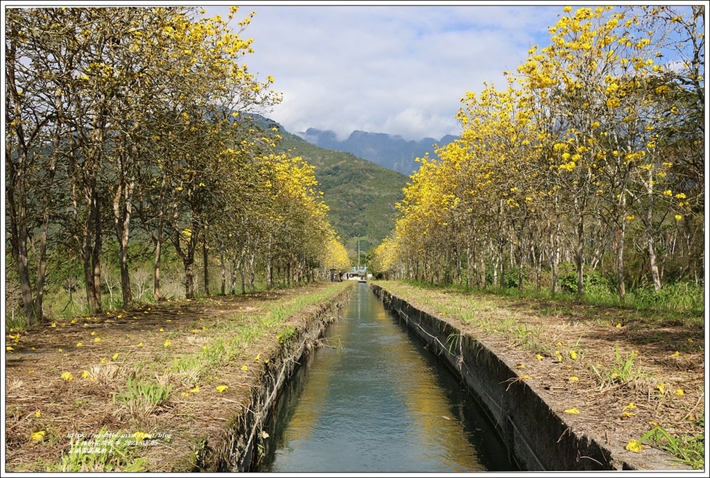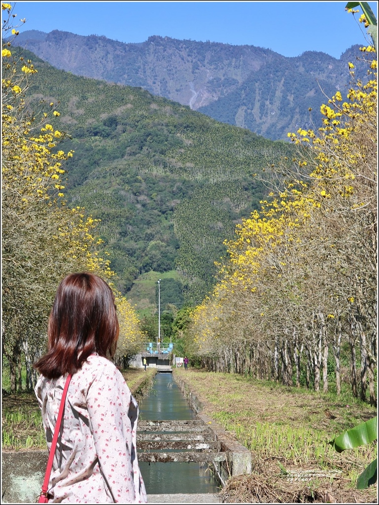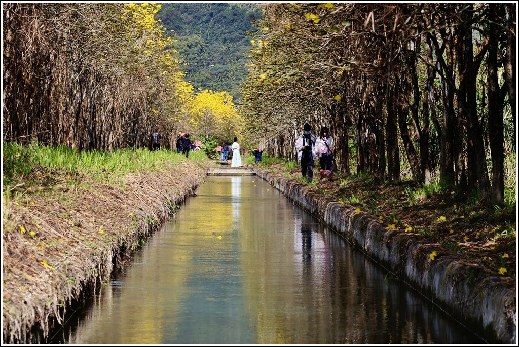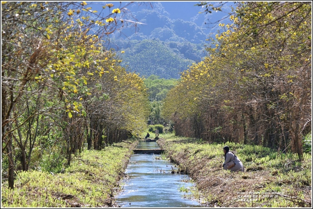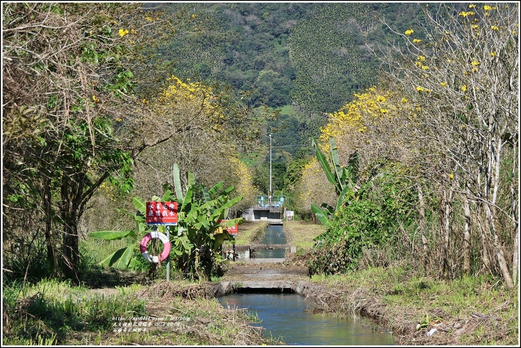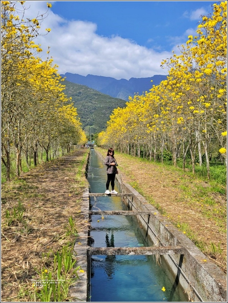 2021年富源黃花風鈴木!二排黃花點綴百年水圳,縱谷優美鄉間即已是畫