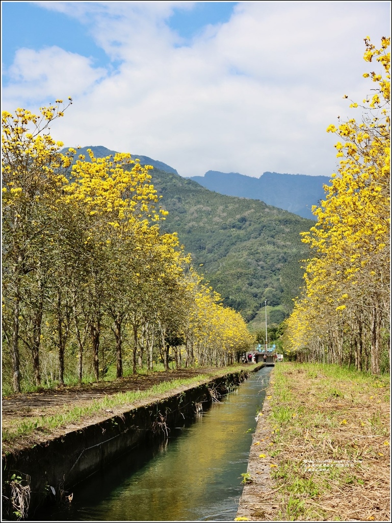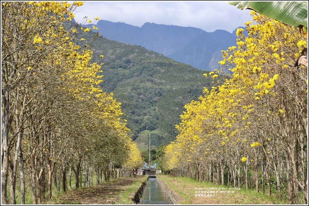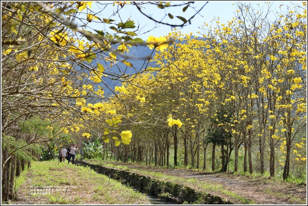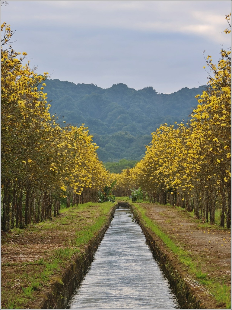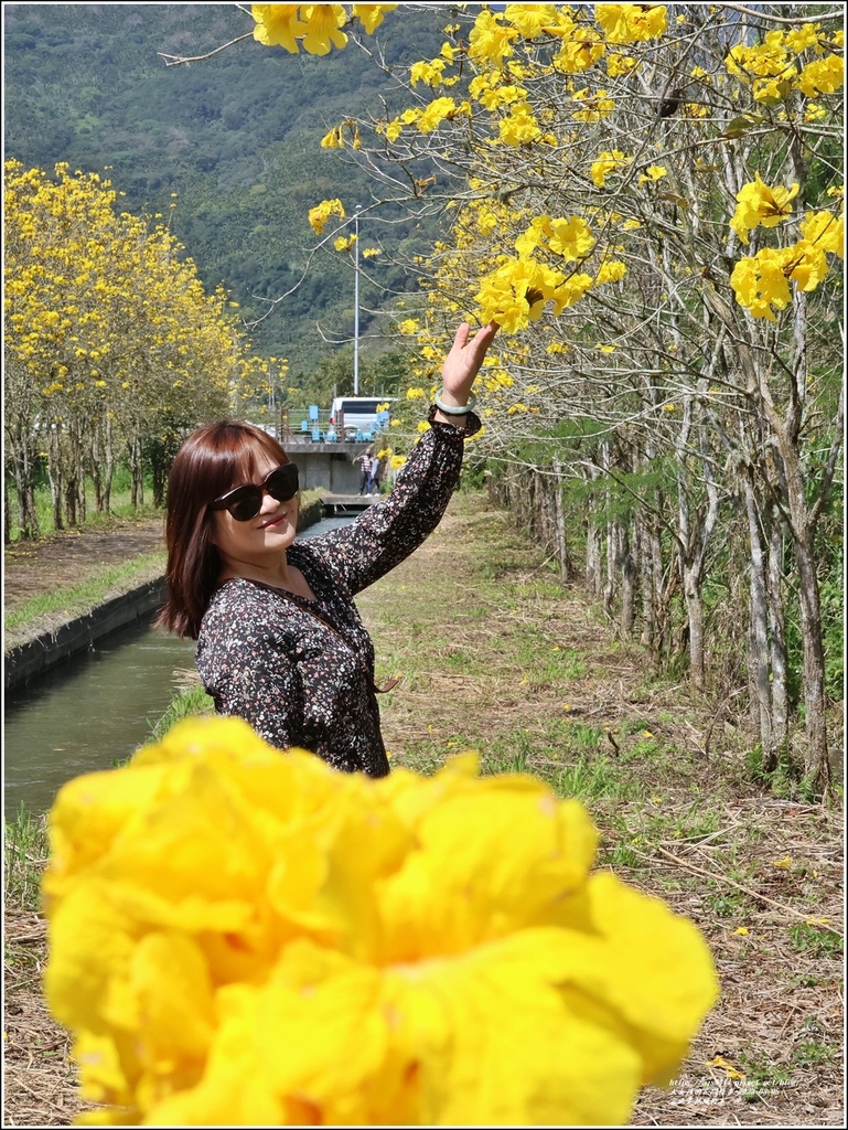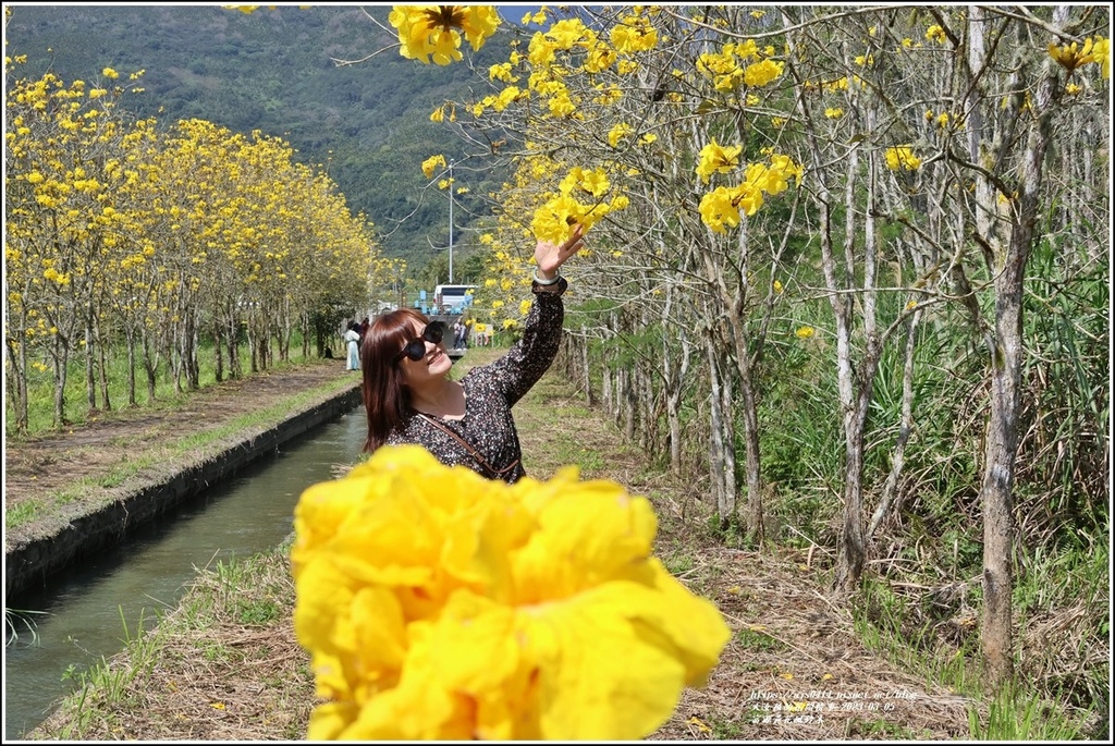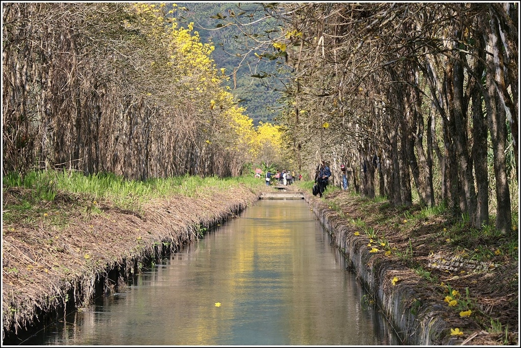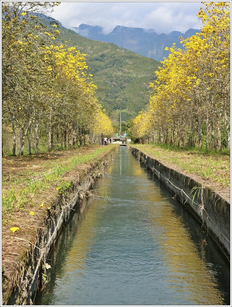 2021年富源黃花風鈴木!二排黃花點綴百年水圳,縱谷優美鄉間即已是畫