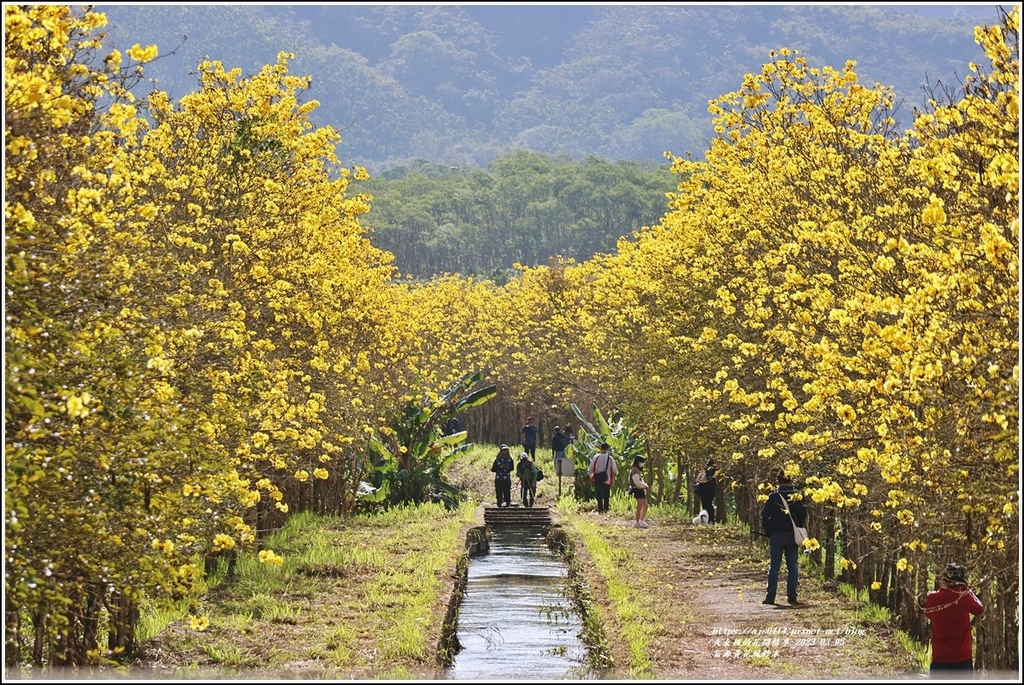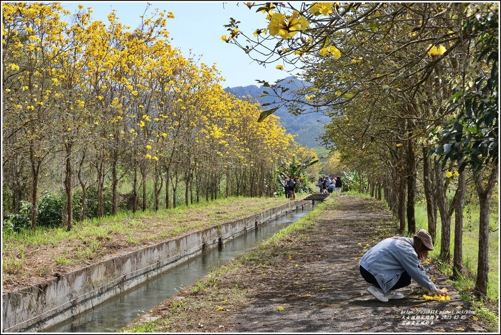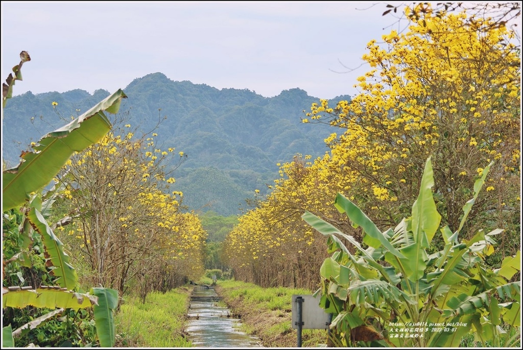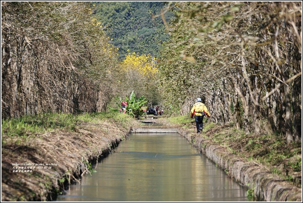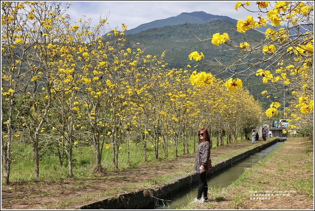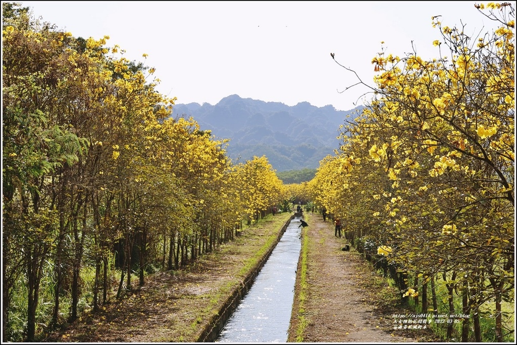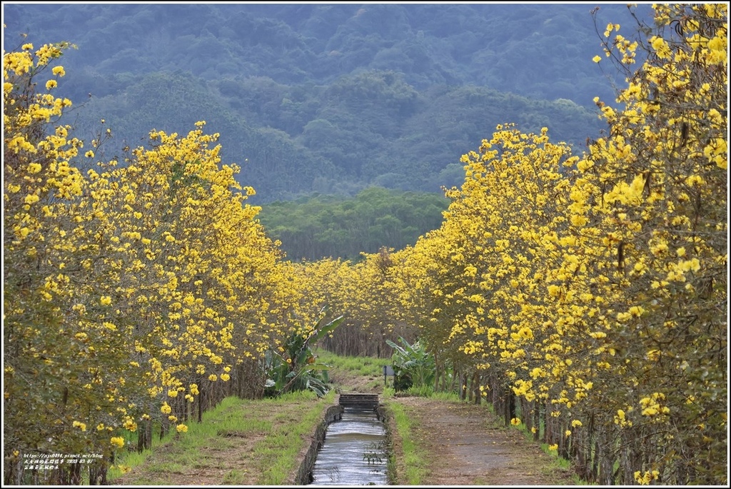2021年富源黃花風鈴木!二排黃花點綴百年水圳,縱谷優美鄉間即已是畫