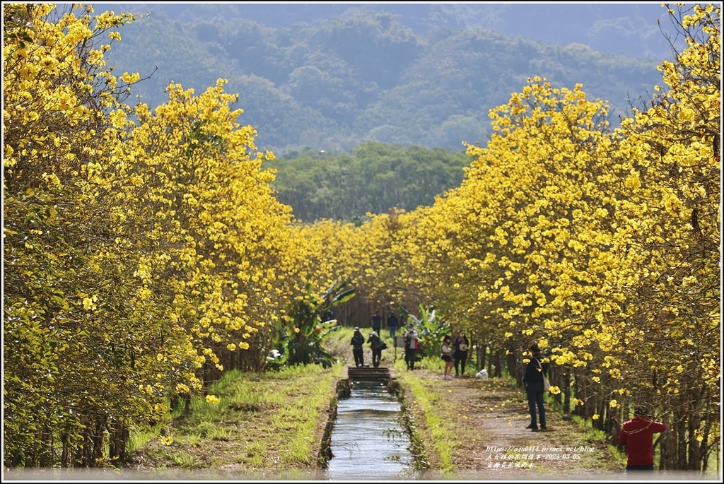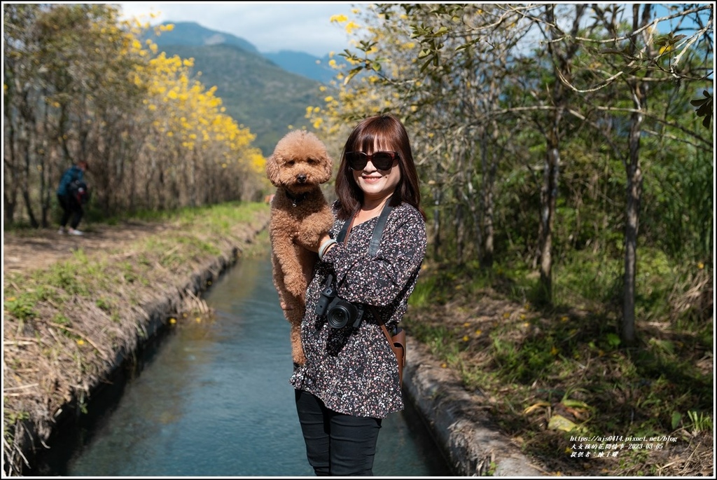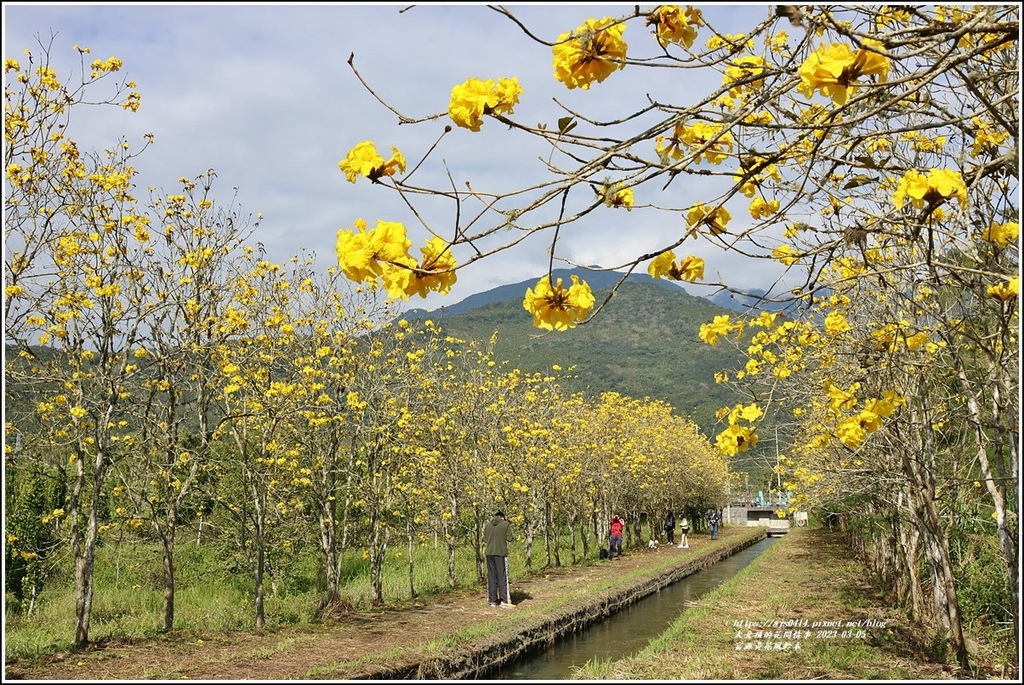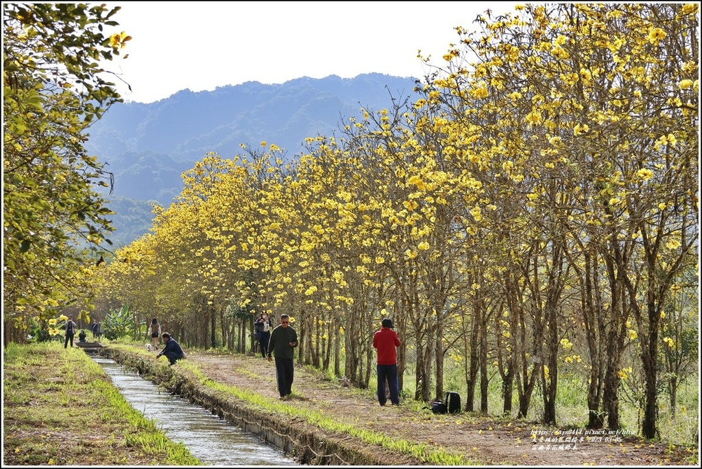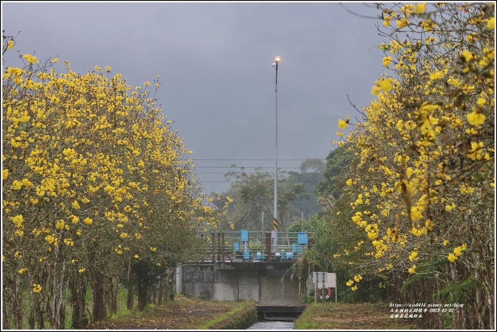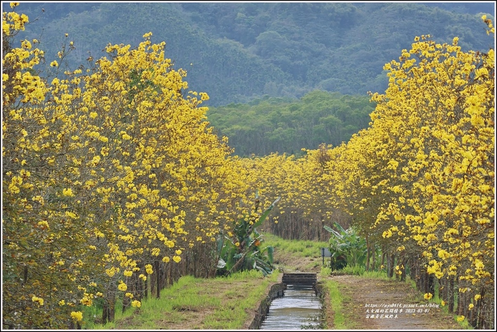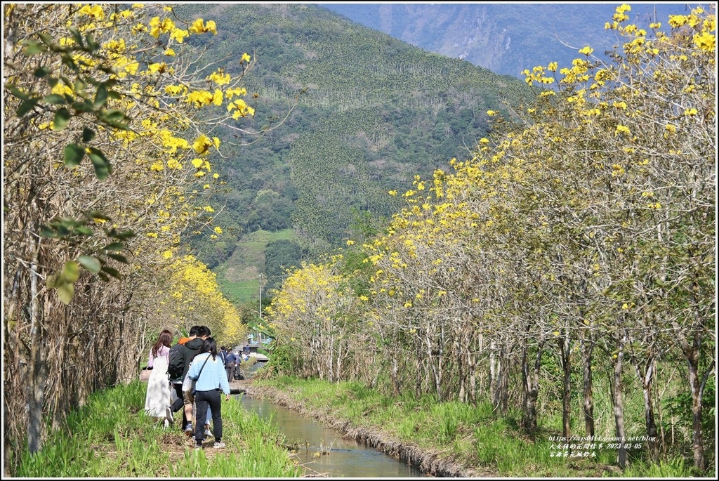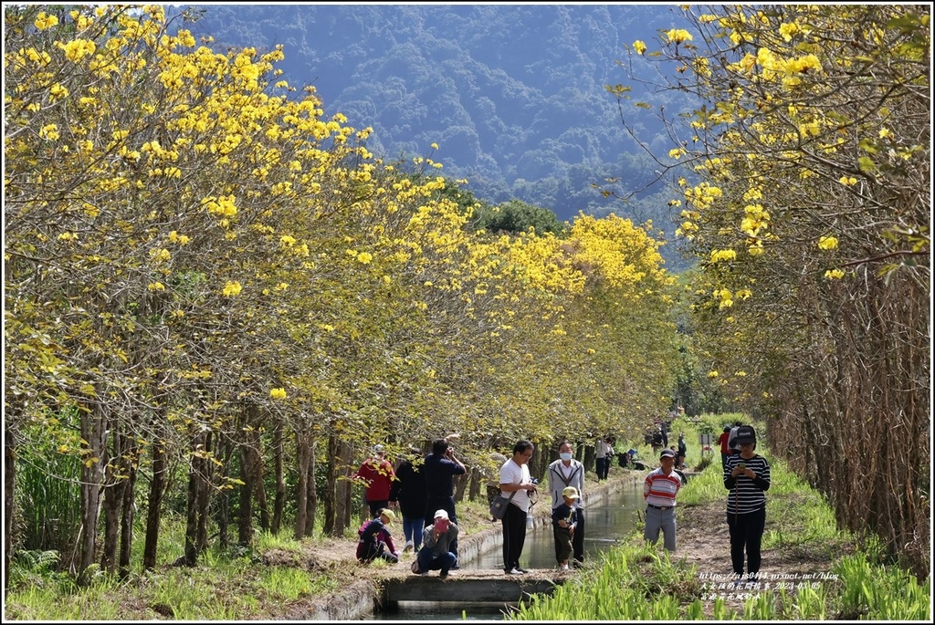 2021年富源黃花風鈴木!二排黃花點綴百年水圳,縱谷優美鄉間即已是畫