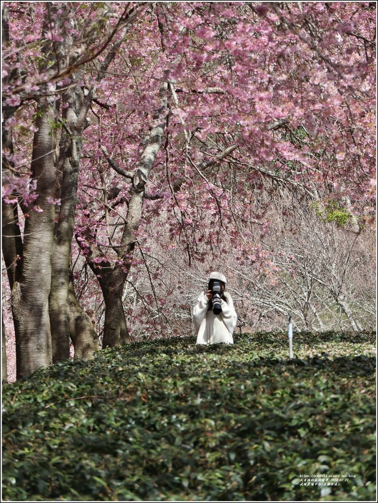 茶莊二排的櫻花盛開,枝條較低的站上去就很好拍