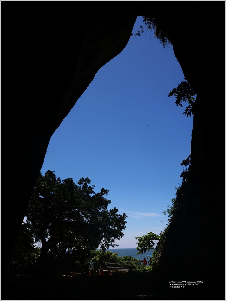 洞口方向朝向東方,為一尖峰型海蝕洞