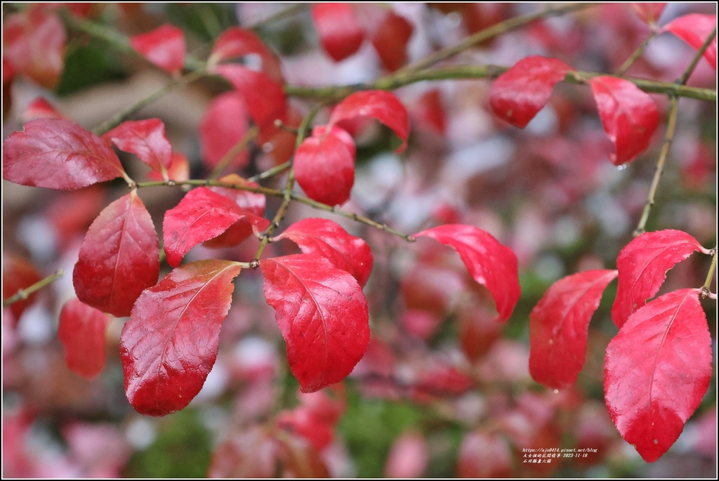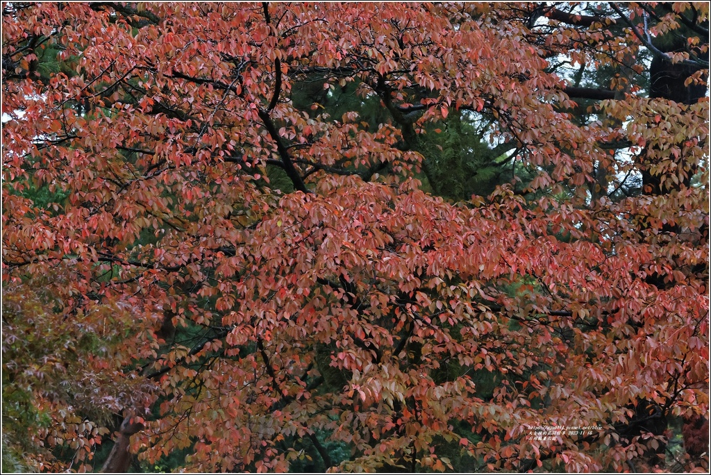 不只楓葉變紅,就連其它會變色的樹種也紅了
