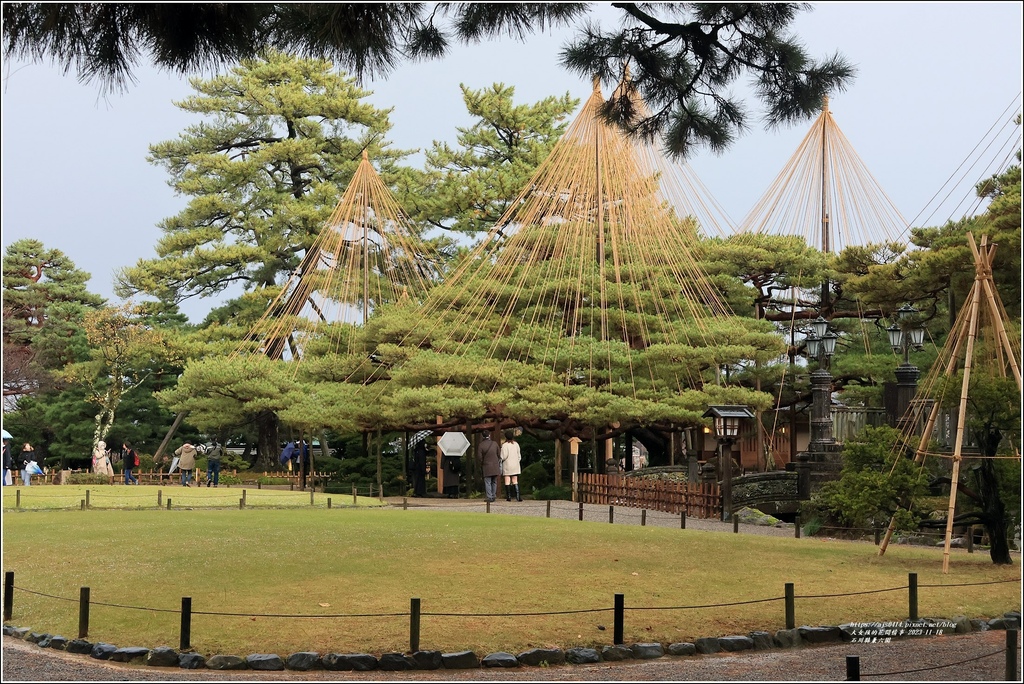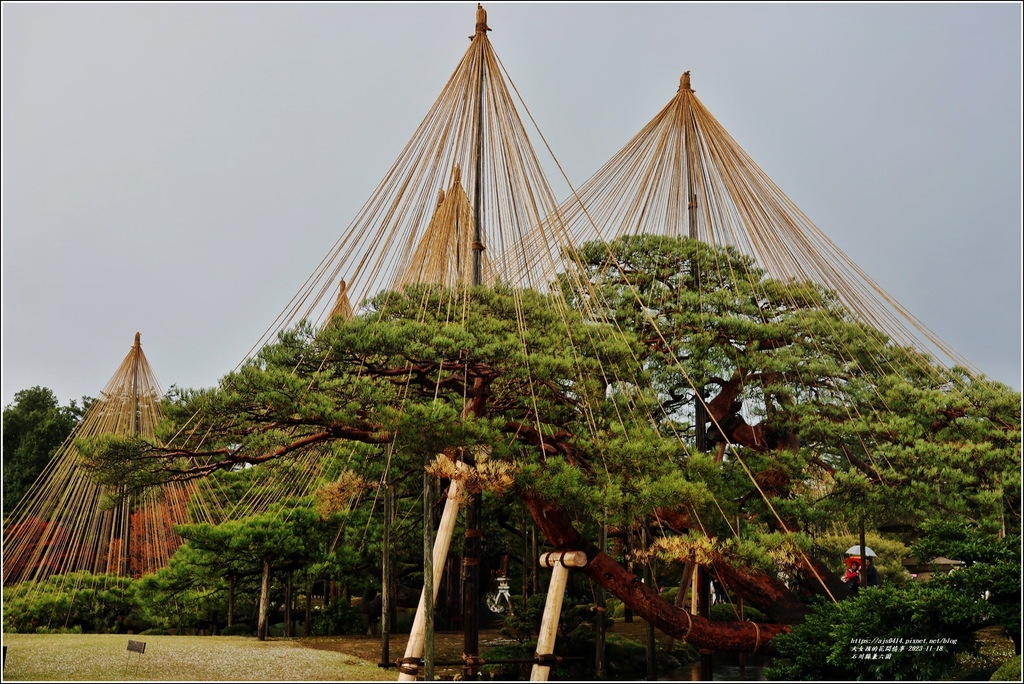 如果早半個月來到兼六園,可能松樹上傘骨架的雪吊就看不到