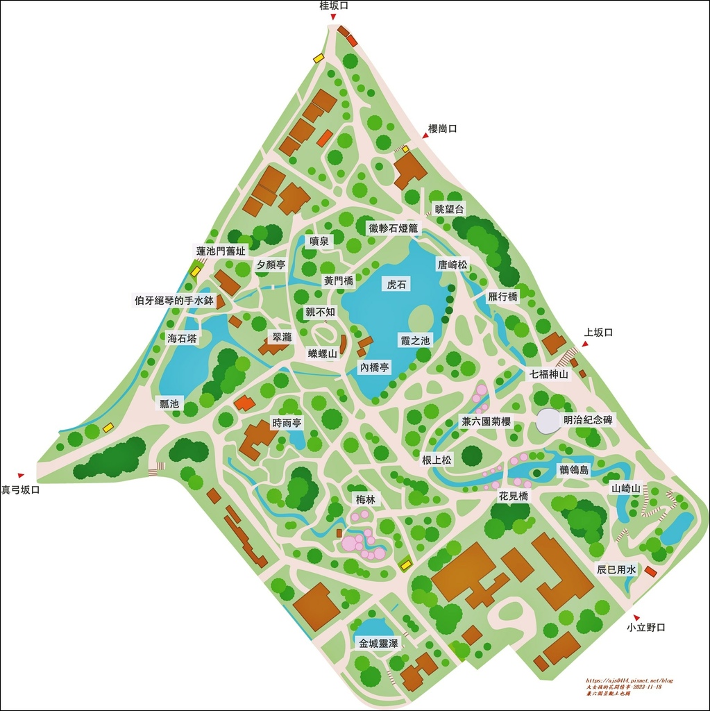 附上兼六園的地圖供參,其實我們也只走一小段