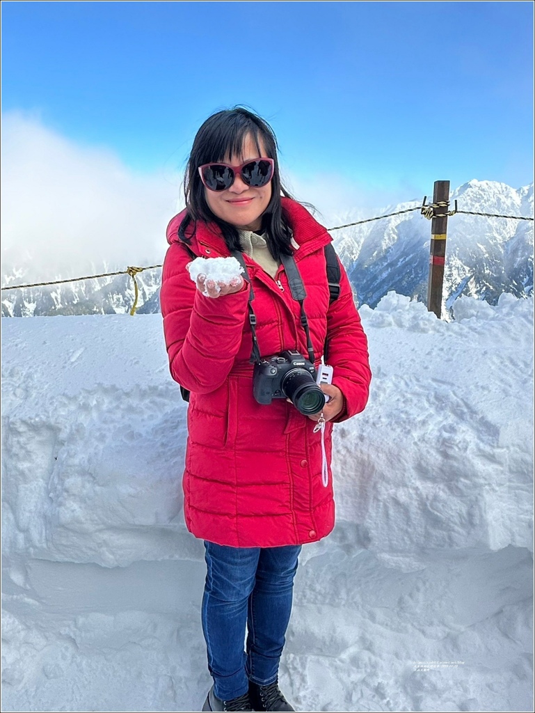 壯闊的立山連峰就在眼前,顧不及冷,小心亦亦踩在雪上再往前走幾步