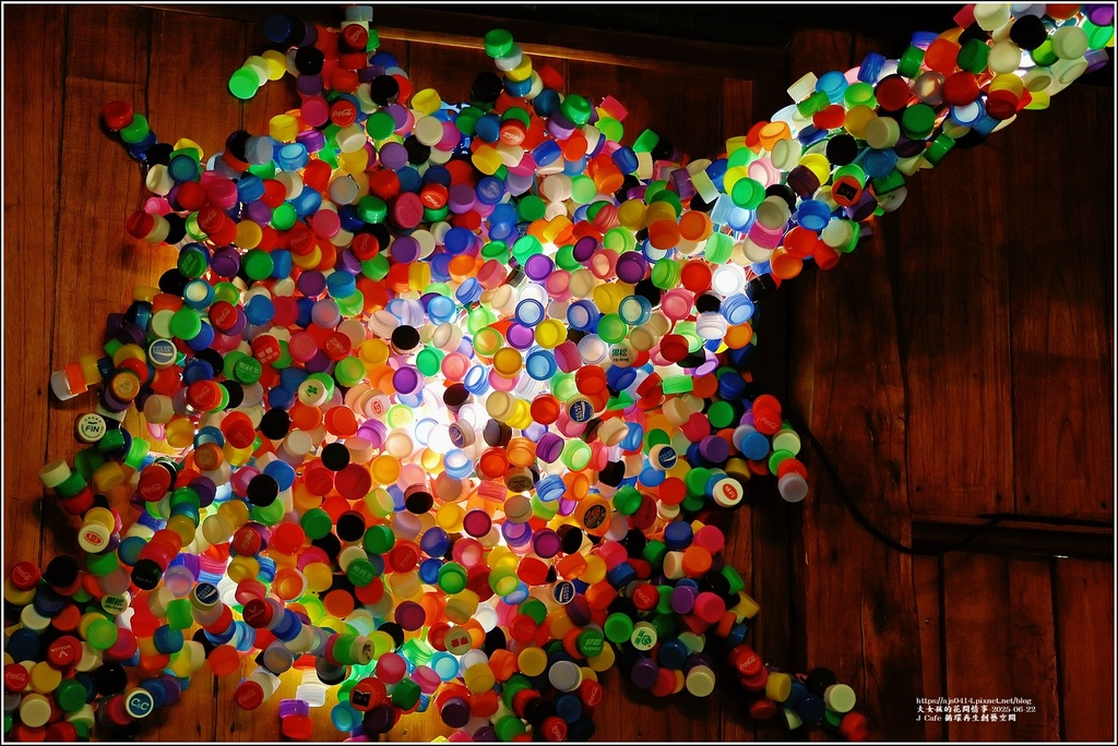 也是非常醒目:是由無數個不同顏色的瓶蓋做成的