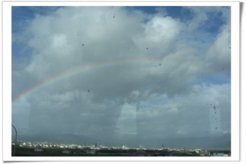 這時天空的雨暫緩,驚見霓虹全車的人都讚嘆