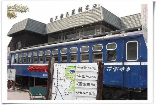 店門有二列古老的列車,吸引著路過的車輪,