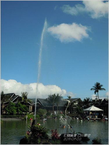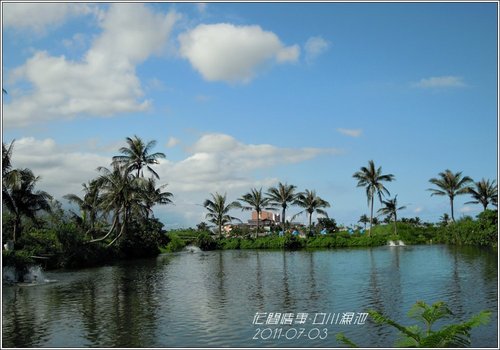 水岸幽徑後頭的水池在藍天椰樹下美的很國外fu
