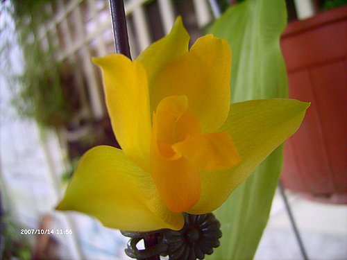 開花也只有一朵,顏色是純黃的,因為只有一朵讓人憐愛的很