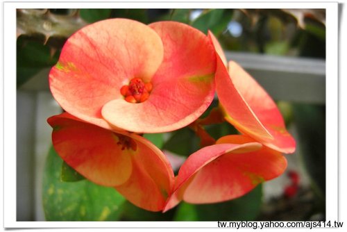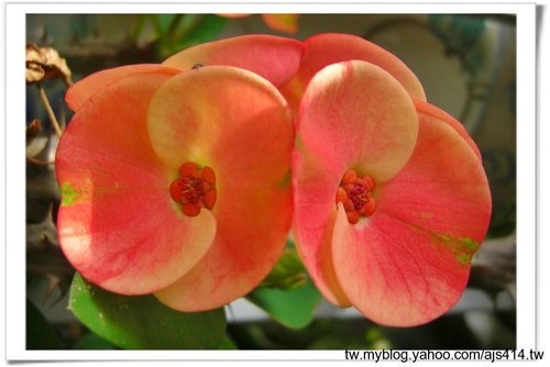 小葉麒麟花花朵小且數量少,莖較細容易彎曲生長,刺排列較無次序