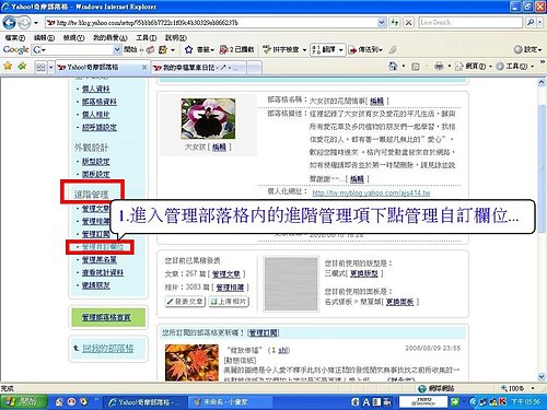 在進入管理部落格,這裡有個進階管理項下的管理自訂欄位,