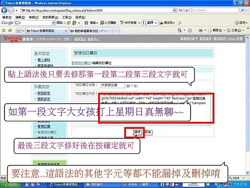 如果使用的是單版公告欄,方法一樣的,只要將輸入妳想說的話修成妳想要說的話就可~~