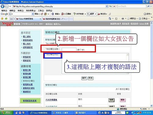 在自訂欄位處打上妳要的欄位名(紅框部份),如大女孩公告,
