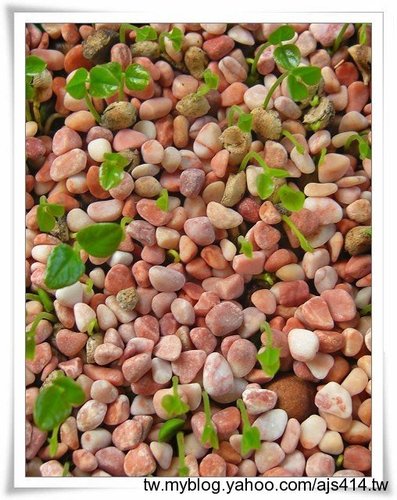 左邊4 種子泡水後在花盆裡排後在覆上彩色石